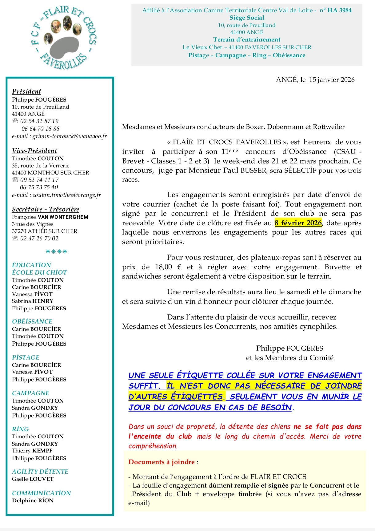 Club d'Education affilié à la Société Centrale Canine. Ce club est ouvert à toutes les races.